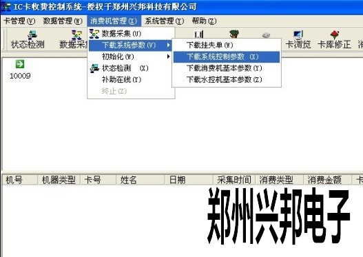具體操作步驟為:將消費(fèi)機(jī)連接到通訊線上,打開(kāi)一卡通系統(tǒng)確認(rèn)機(jī)器通訊正常然后選擇--消費(fèi)機(jī)管理--下載系統(tǒng)參數(shù)--下載系統(tǒng)控制參數(shù)--下載消費(fèi)機(jī)基本參數(shù)或者下載水控機(jī)基本參數(shù)(如下圖所示)