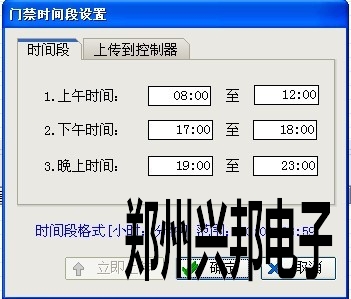 3、設(shè)置好要開門的時(shí)間段后點(diǎn)擊‘確定’進(jìn)行保存,點(diǎn)擊‘上傳到控制器’選擇相應(yīng)控制器點(diǎn)擊‘立即上傳’。
