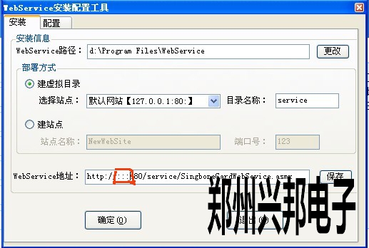 2. 如紅色標(biāo)注處,正常的應(yīng)該顯示本機(jī)電腦的IP地址,但是此時無法獲取IP地址,80端口被占用,在此處手動輸入本機(jī)IP地址,點擊保存,復(fù)制WebService地址,配置完成后退出。