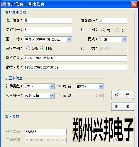 注意:學工號是不能修改的,卡一旦發(fā)行后學工號是不允許修改的,學工號在系統(tǒng)中是唯一標識,不允許重復。