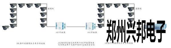 施工方采用485中繼器解決上述問題。在A,B教學(xué)樓里面各放一個(gè)485中繼器,等于把一個(gè)485網(wǎng)絡(luò)分成了3個(gè)485網(wǎng)絡(luò),這樣485網(wǎng)絡(luò)就可以很穩(wěn)定的運(yùn)行。再由于教學(xué)樓之間的200m的距離是在兩個(gè)485中繼器中間,即使有強(qiáng)電干擾,由于485中繼器中防雷保護(hù)和光隔離功能,也會(huì)被其所吸收,隔離。從而保證了485網(wǎng)絡(luò)的穩(wěn)定性及安全性。