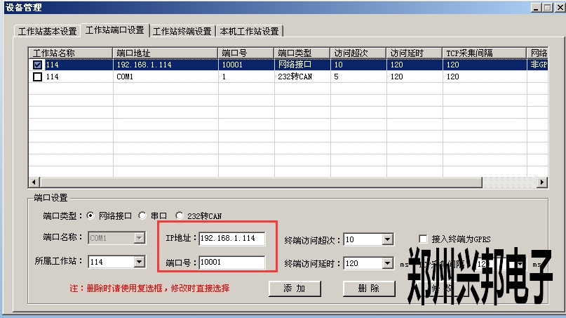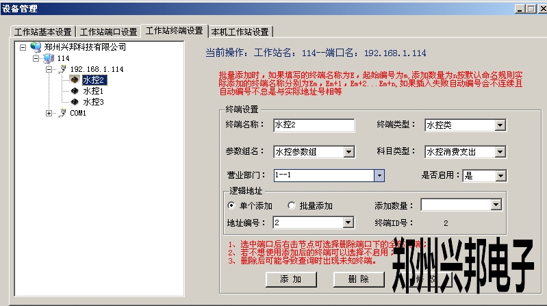工作站端口設(shè)置完成后,在工作站終端設(shè)置中添加對(duì)應(yīng)的終端即可,如下圖所示: