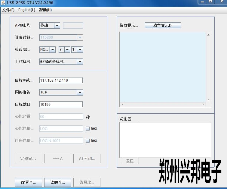息,設(shè)置參數(shù)要與 GPRS 串口連接的串口設(shè)備的串口參數(shù)一致。這里我們使用115200波特率