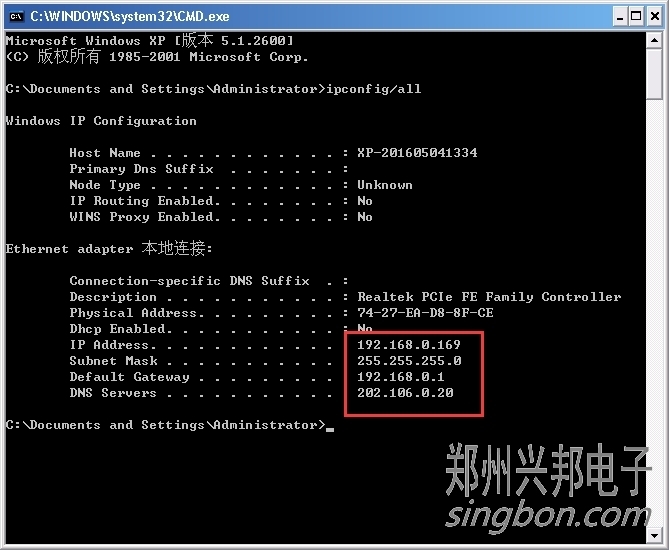 1.通過命令行來查看電腦的IP、網(wǎng)關(guān)、和DNS,步驟大致為:開始>>運(yùn)行>>輸入‘’cmd‘’>>輸入"ipconfig/all",點(diǎn)擊回車,可以看到下圖界面