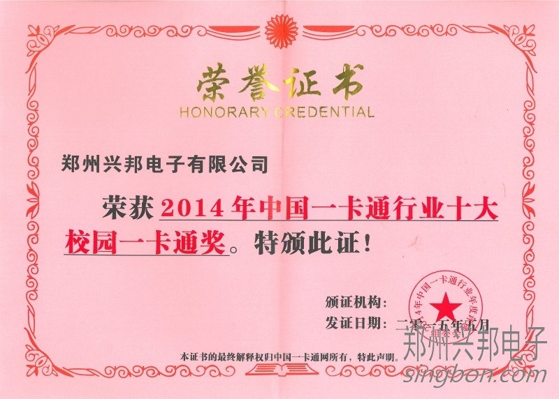 興邦電子榮獲2014年度十大校園一卡通品牌