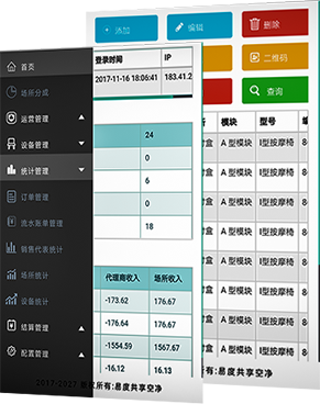 7大運(yùn)營(yíng)管理模塊,22項(xiàng)內(nèi)容管理,真正實(shí)現(xiàn)設(shè)備7X24小時(shí)/全年無(wú)休運(yùn)營(yíng),在線運(yùn)營(yíng),在線場(chǎng)所管理,財(cái)務(wù)結(jié)算報(bào)表分析,遠(yuǎn)程配置功能等一手掌控!